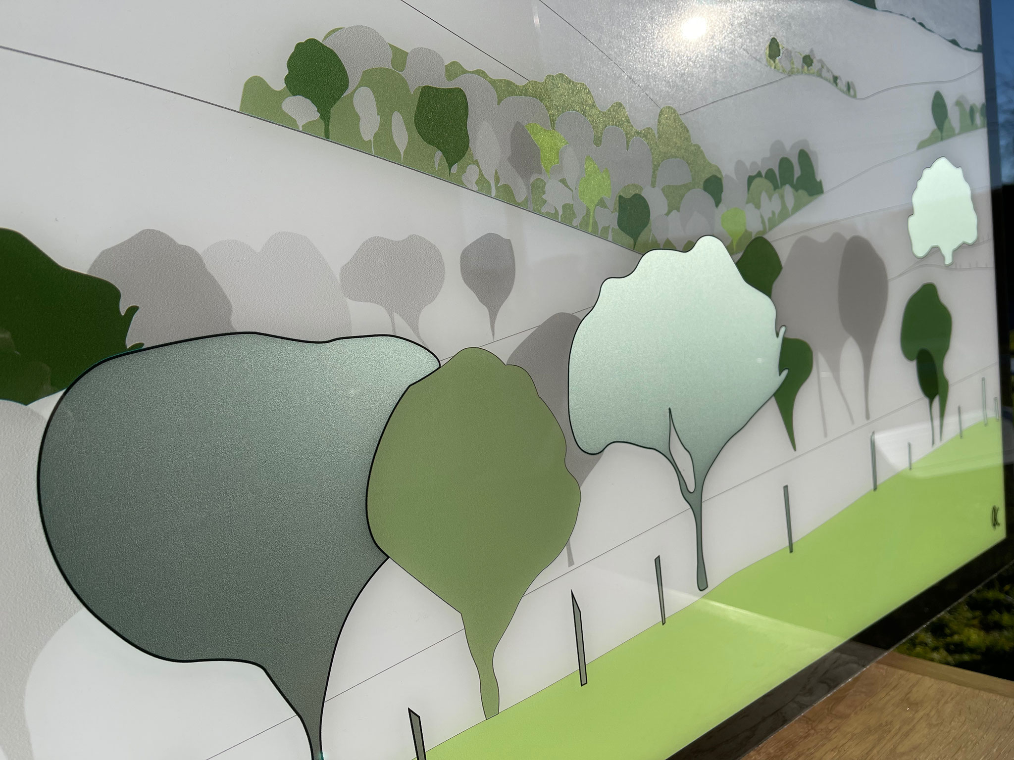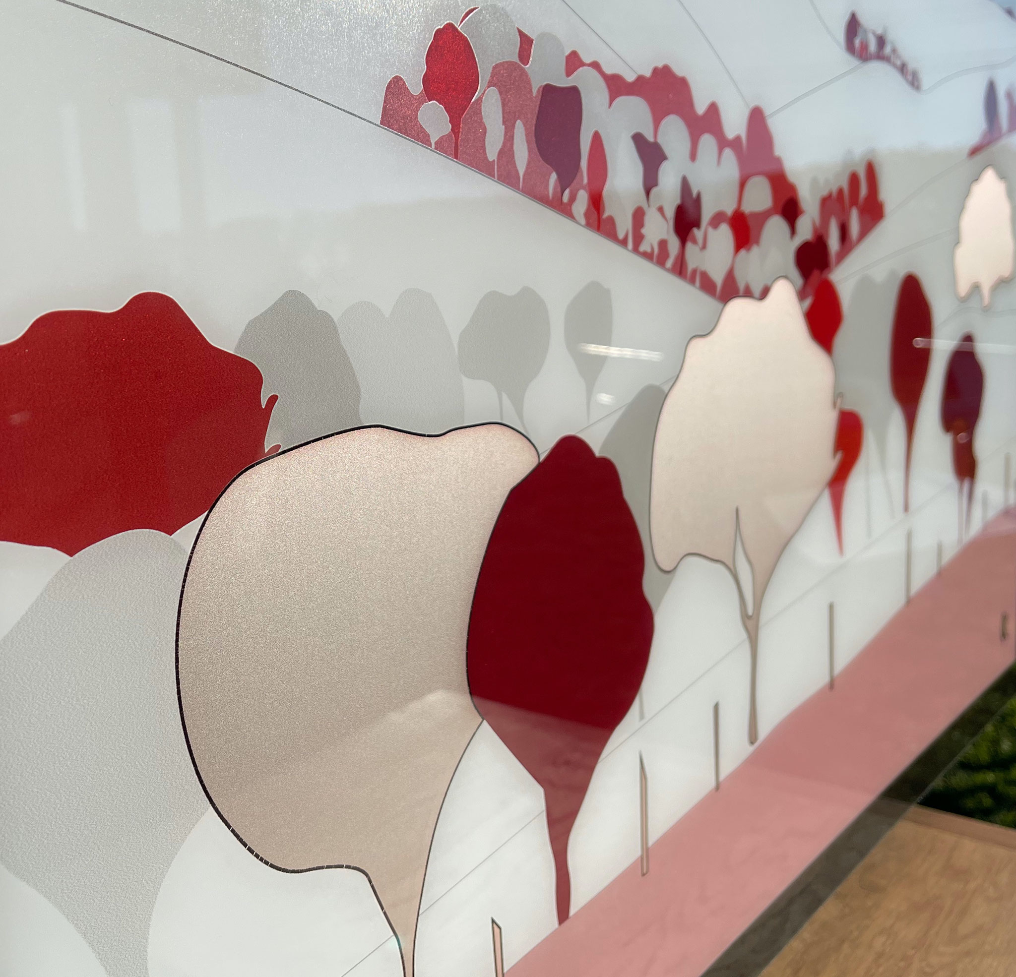 Elles y associent la technique artisanale de la sérigraphie appliquée sur des plaques en verre acrylique.